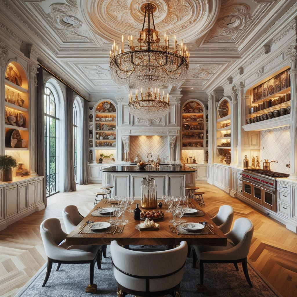 - تزئینات طلاکاری: در کابینتها و قابهای آینه